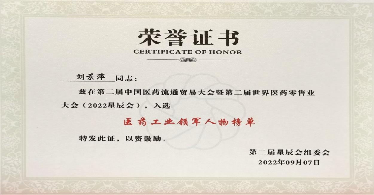 第二届星辰会盛大开幕 刘景萍董事长入选“医药工业领军人物”榜单